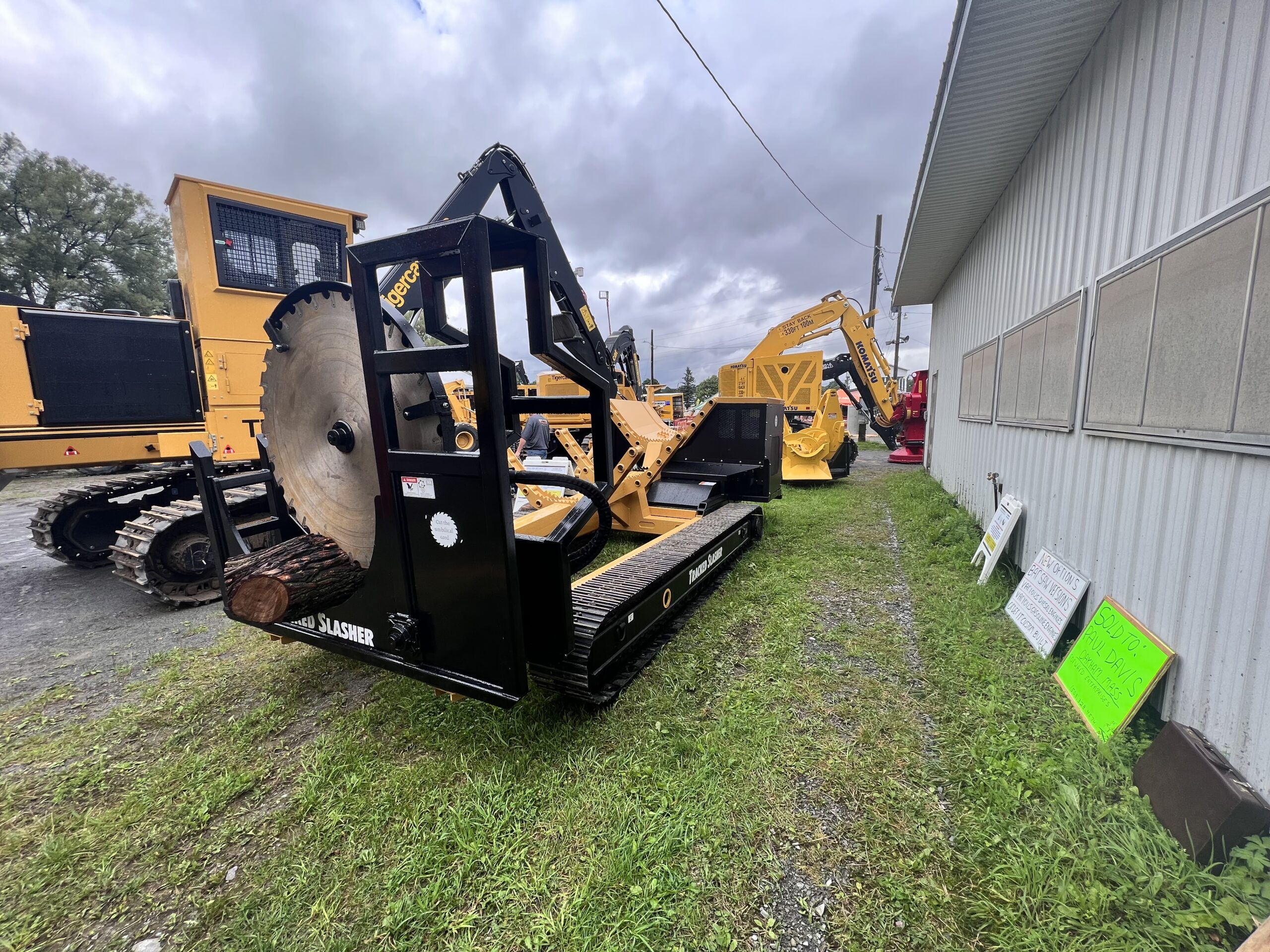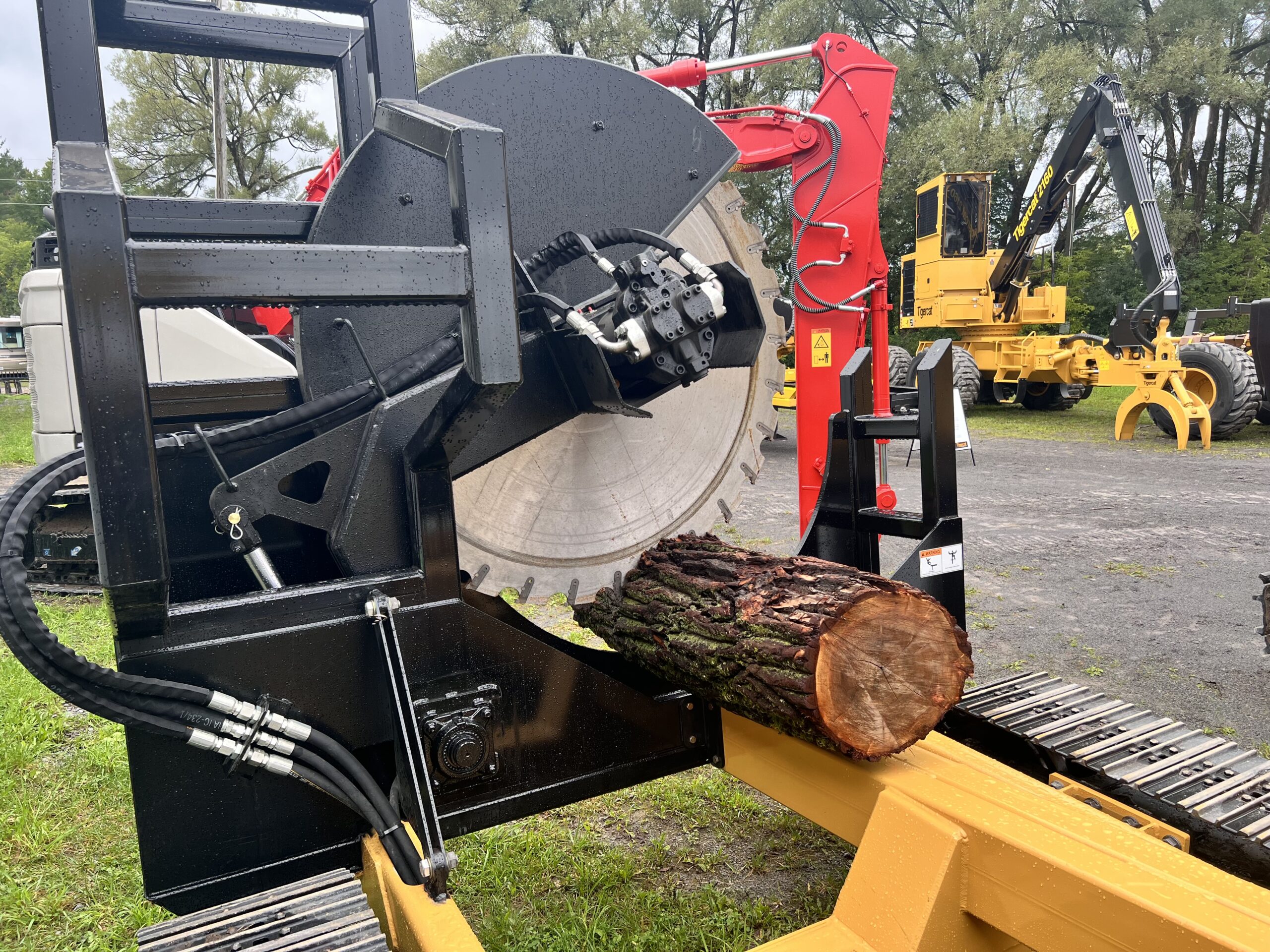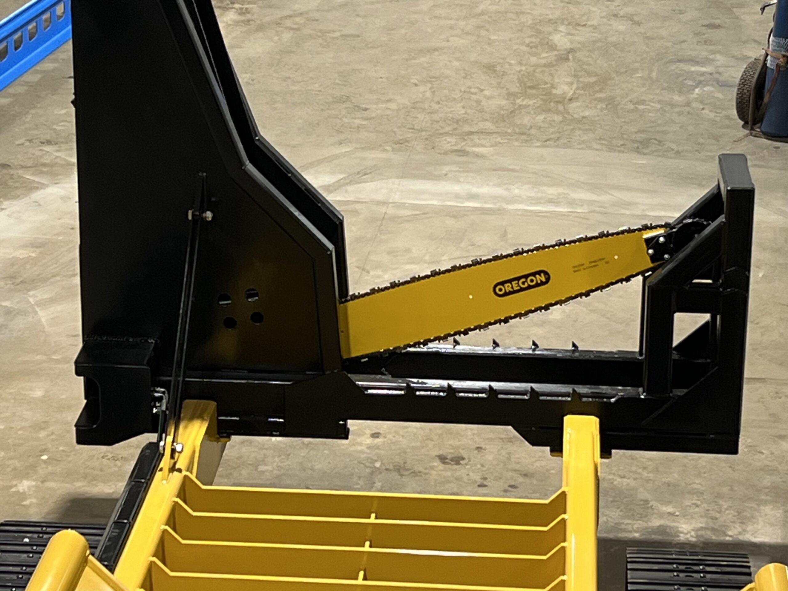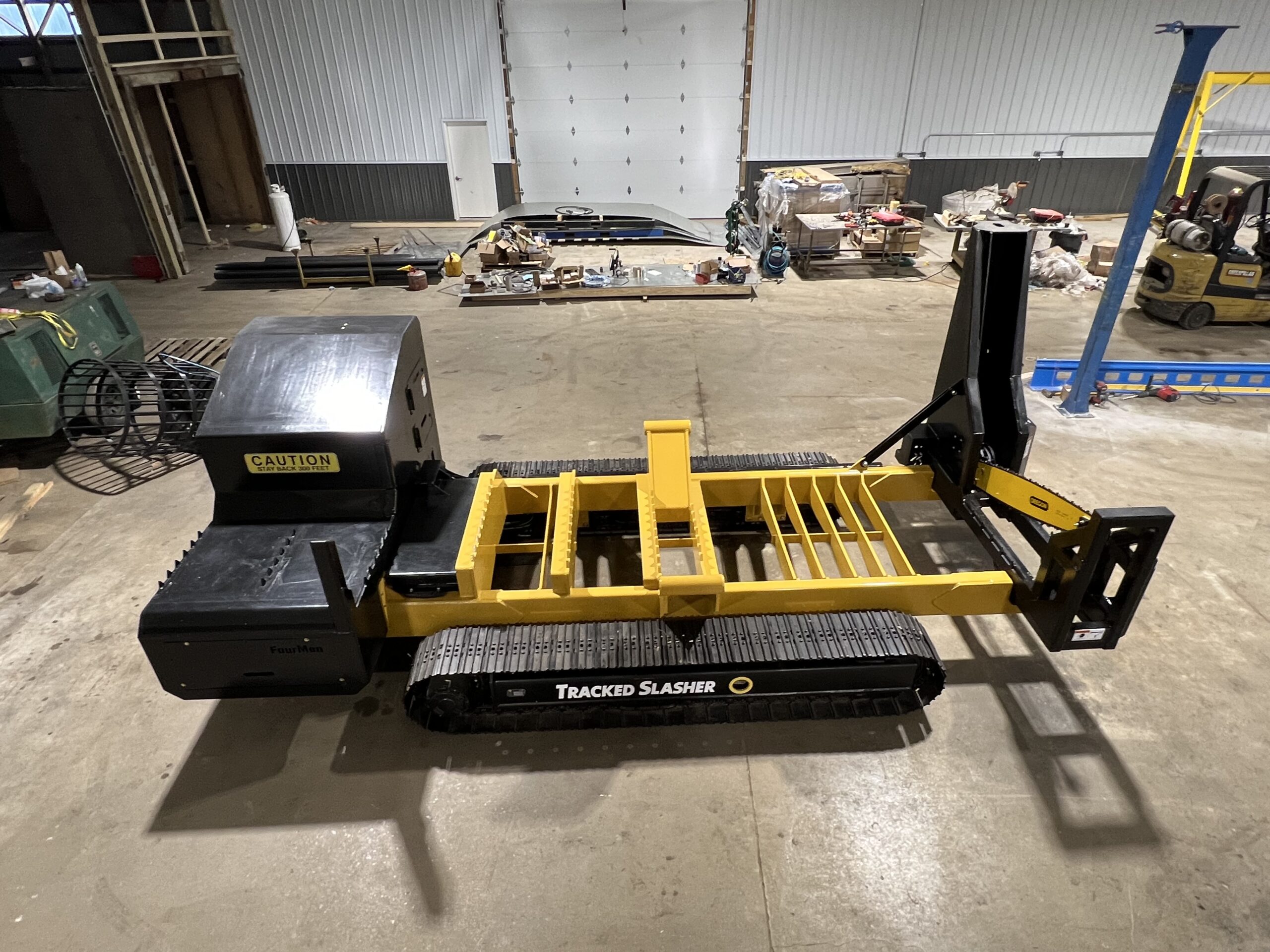 Then John’s thoughts started to get creative. Said Steciak, “I thought, a log loader’s boom geometry is great for lifting but not so good job at logging. But you can’t cut up timber with it.” That's when it hit him: “How about a self-contained, cordless, remote-controlled circular saw on tracks?” As soon as he’d had the idea, he decided he’d have to build a prototype. Steciak set to work in 2017 to build his tracked slasher. “ I thought, on a regular logging job, you’re hooked up to this thing all the while and it’s quite a job to unhook the hoses and then you lose a little oil sometimes. It’s also dirty and messy. But having a separate machine ...it makes life much easier. You can stop what you’re doing and go load a truck and pile some logs and you don’t have to unhook from the slasher.”